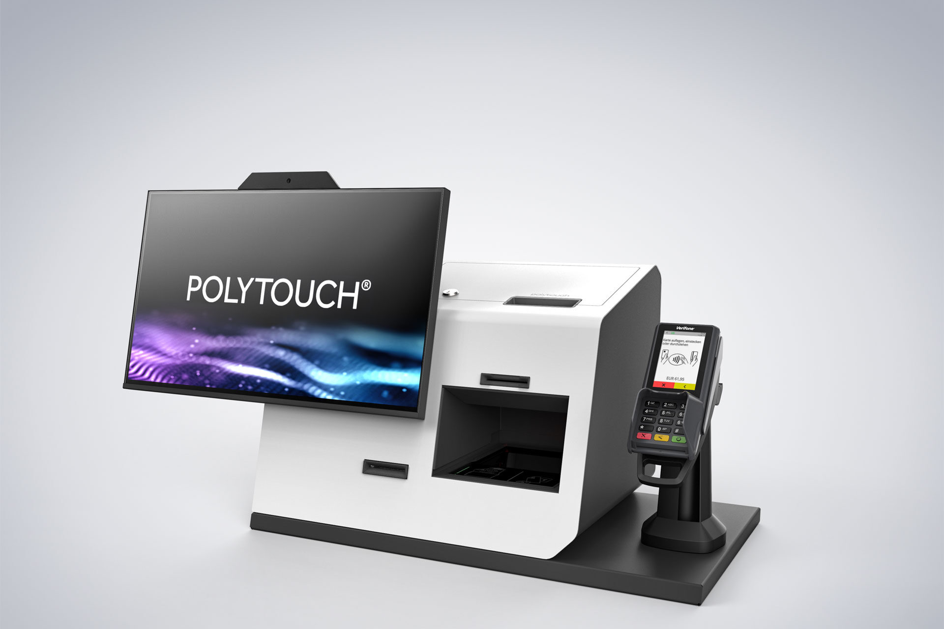 Mit seinem kompakten Chassis findet das Terminal seinen Platz in jedem Ladenkonzept: als Self-Checkout-System im Retail oder als Self-Order-Kiosk in der Gastronomie.