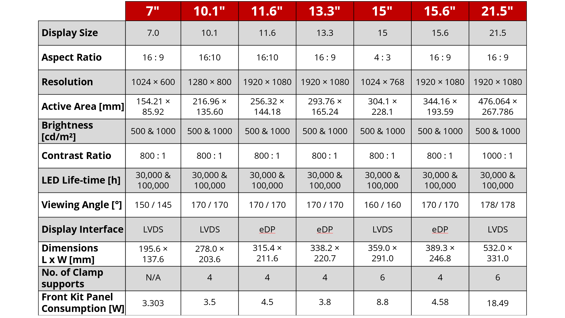 Übersicht Open Frame Touch Monitore Bildschirmgrößen
